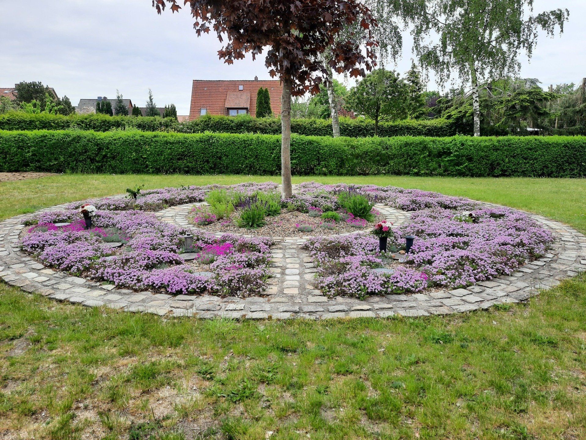 BAUMGRABURNENANLAGE MIT NIEDRIGEN STAUDEN ALS BODENDECKERBEPFLANZUNG